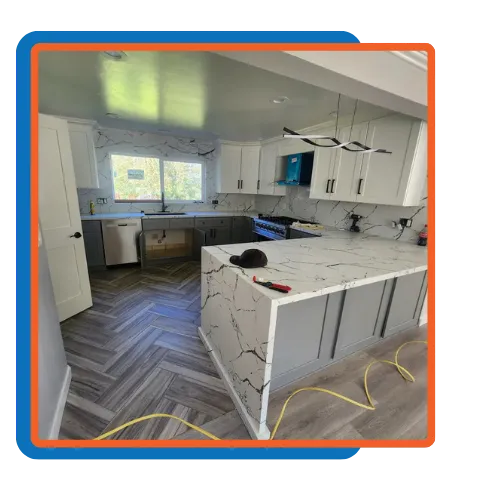 Cabinet painting/refinishing in Bridgeport updates kitchens fast, and Master Builder Construction JMR protects counters carefully.